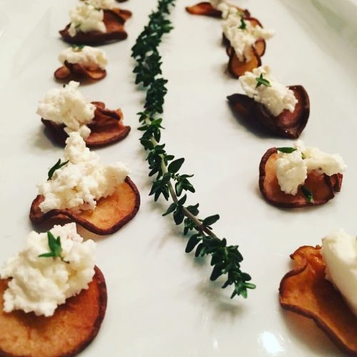 Honey roasted pear, goats cheese and thyme